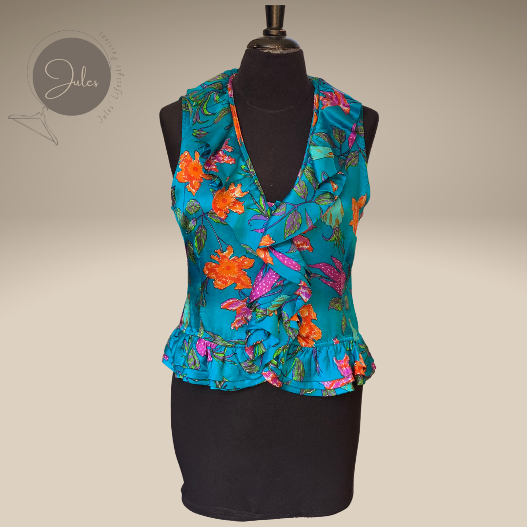 Short silk sleeveless blouse with ruffle by SCAPA, Size 40